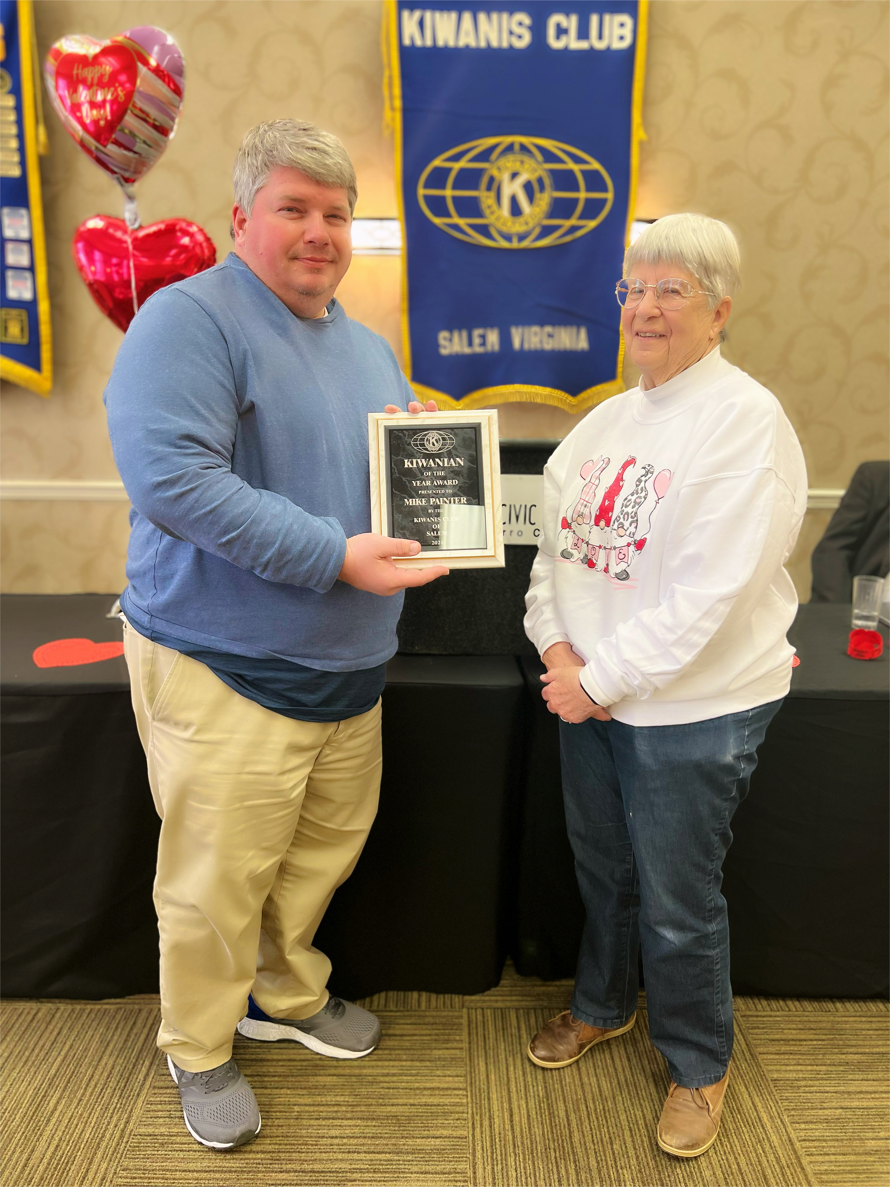 Past President Mary Cross presenting 2021 Kiwanian of the Year – Mike Painter